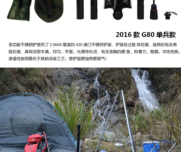工厂新款不锈钢户外探险荒野徒步旅行汽车载神器多功能藏獒工兵铲